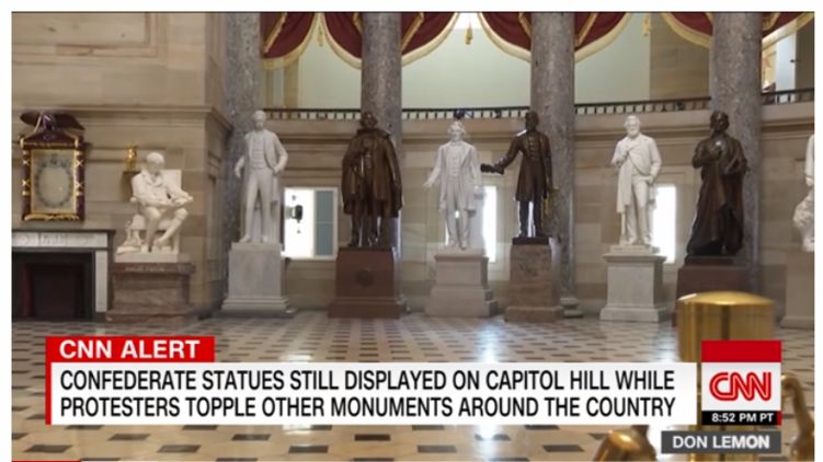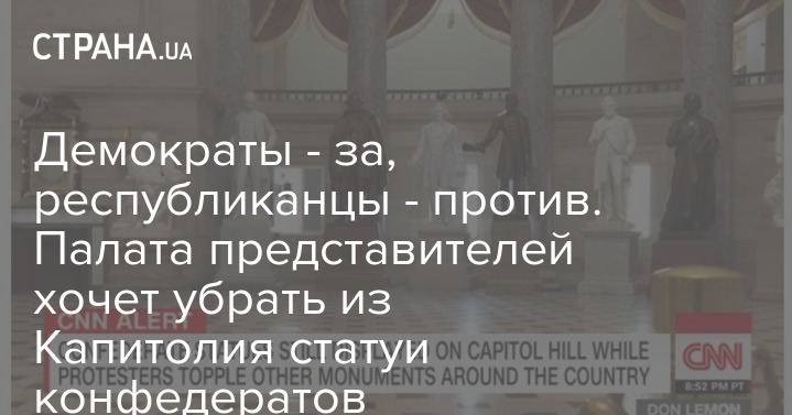 Палата представителей Конгресса США большинством голосов приняла резолюцию о том, что бы убрать из Капитолия все статуи видных конфедератов. Об этом сообщает канал CNN.