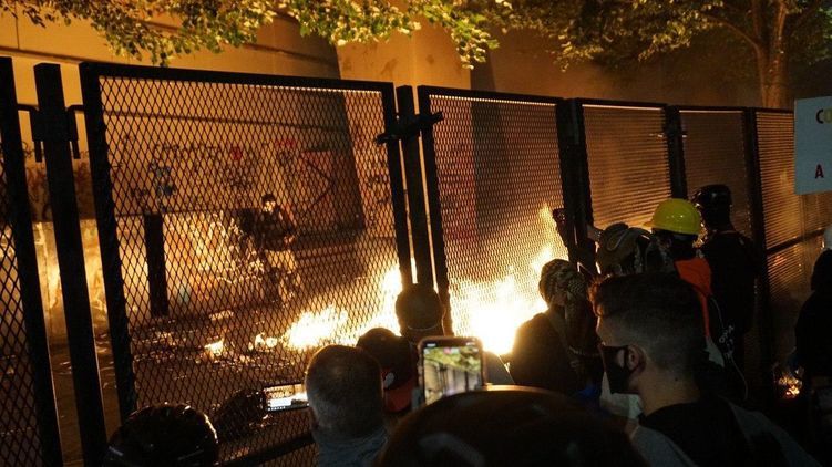 Протесты в Портленде продолжаются уже более 50 дней. За последние сутки столкновения обострились после того, как протестующие начали расшатывать ограду здания суда, перебрасывать на его территорию петарды и зажигательные смеси.