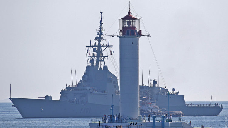 Первыми в Практической гавани на военно-морской базе "Юг" пришвартовались румынский корвет "Контрадмирал Себастиан" и болгарский "Бодрый". Затем к 18,19 и 20 причалу прибыли испанский флагман "Альваро де Базан", турецкий "Йылдирим" и румынский "Регина Мария".
