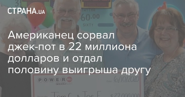В США произошел просто невероятной случай альтруизма. Американец отдал другу половину суммы в 22 миллиона долларов, которые он выиграл в лотерею Powerball.