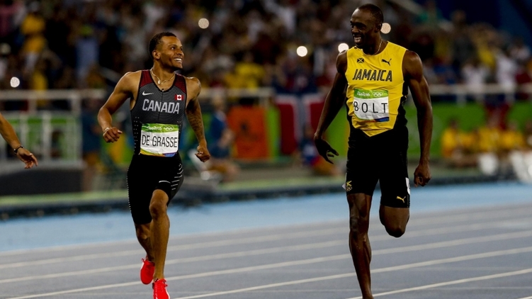 В полуфинале Болт финишировал параллельно с де Грассе, обмениваясь с ним взглядами и смеясь.