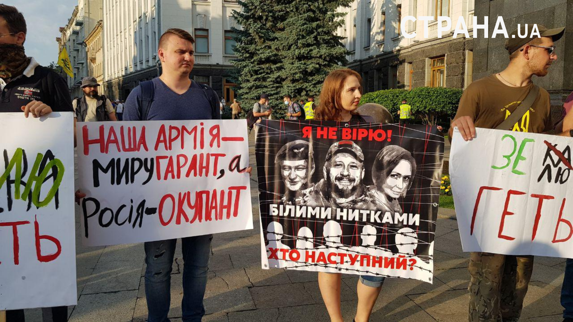 На Банковой проходит акция против перемирия на Донбассе и Зеленского