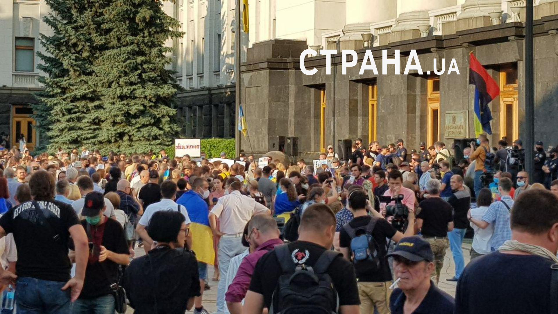 В понедельник, 27 июля, у Офиса президента сторонники Петра Порошенко митинговали против перемирия на Донбассе, которое объявлено с сегодняшнего дня.