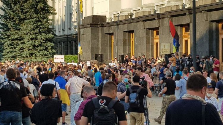 Если в начале акции перед Офисом Зеленского было около ста человек, то сейчас на Банковой уже не меньше 800 митингющих.