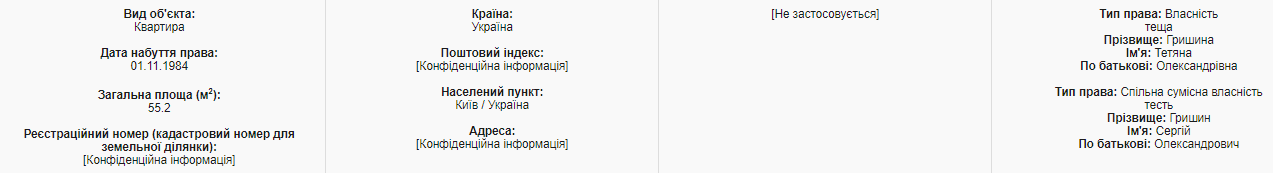Также указано, что тесть и теща владеют квартирой в Киеве (55 кв м) с 1984 года.