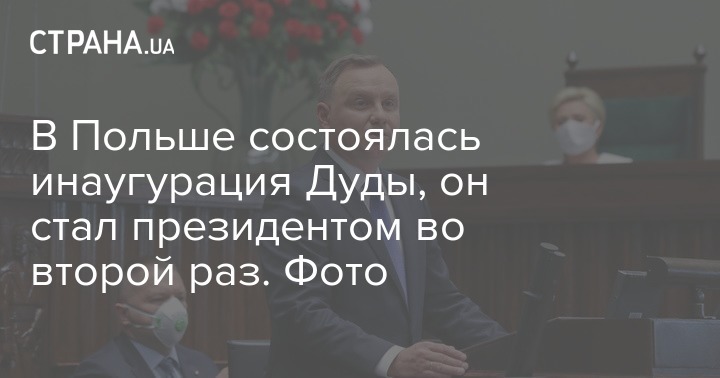 Из-за пандемии коронавируса церемония инаугурации проходит в парламенте с соблюдением усиленных санитарных мер. Большинство присутствующих вошли в здание в защитных масках, в том числе избранный президент и его супруга. Дуда - в маске черного цвета, а его супруга Агата - в белой, под цвет белого костюма.