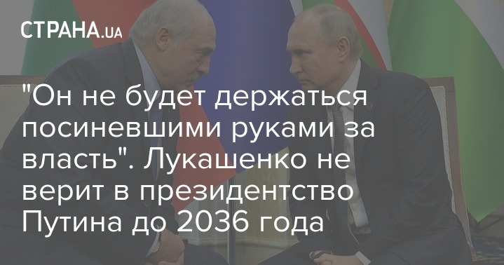 "Нет, это вы выдумали. Никогда Путин не будет президентом до 2036 года. Я 100 процентов гарантирую - Путин не будет держаться посиневшими руками за власть, он найдет вариант, чтобы к власти пришли люди или человек, который продолжит тот путь развития России, который существует сейчас", - заявил Лукашенко.