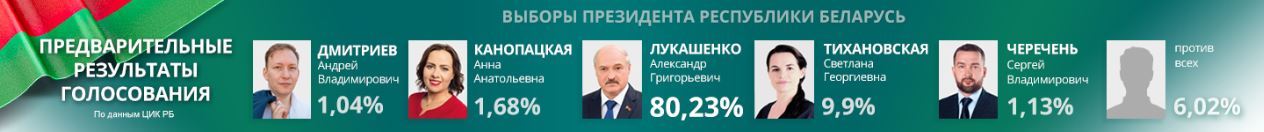 12:51 Только что ЦИК Беларуси объявил, что выборы президента состоялись. Проголосовали более 50% избирателей.