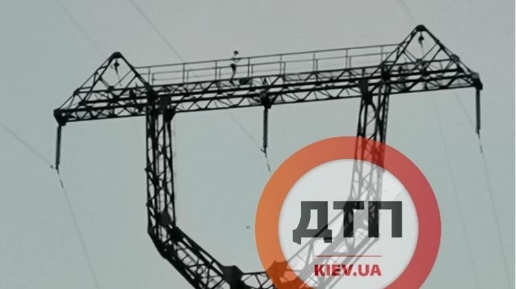 В Вышгороде Киевской области очевидцы сняли на огромной электрической опоре молодого человека, который с риском для жизни залез на сооружение, чтобы запустить квадрокоптер.