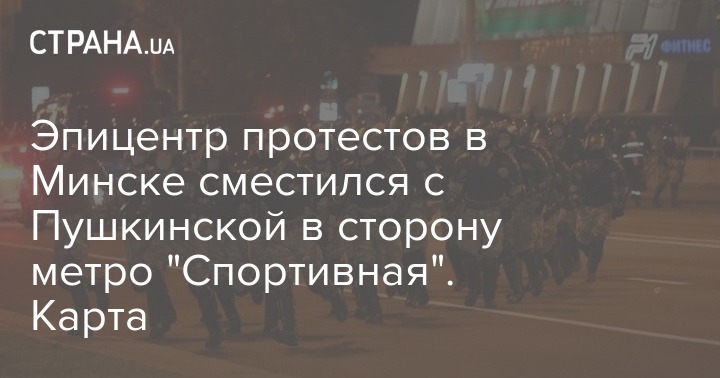 Карта, как эпицентр протестов в Минске сместился с Пушкинской в сторону метро Спортивная