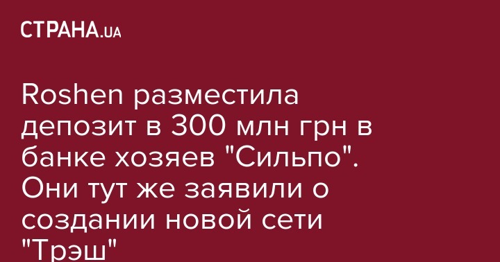 Любопытно, что почти одновременно с этим сообщением о депозите от "Рошена" пришла и другая новость: Fozzy Group заявила о запуске новой торговой сеть дискаунтеров (магазинов с недорогими продуктами для бедных слоев населения) Thrash! ("Трэш!"). До конца года появится 10 магазинов в 6 городах.