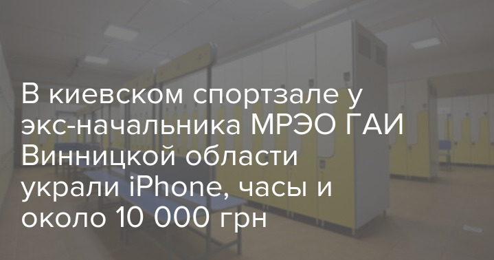 Во вторник, 18 августа, в киевском спортзале обокрали бывшего начальника Межрегионального регистрационно-экзаменационного отдела Госавтоинспекции (МРЭО ГАИ) в Черкассах и Винницкой области. У него стащили Iphone, швейцарские часы и около 10 000 гривен.