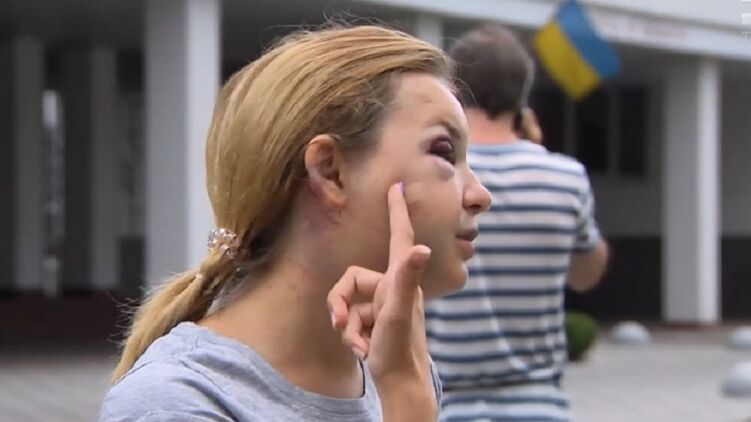 Анастасия Луговая показывает травмы, нанесенные ей насильником. Фото: ТСН.ua