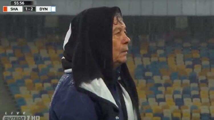 Большую часть важной игры Луческу провел с полотенцем "Динамо" на голове. Так тренер не только укрывался от дождя, который льёт в Киеве.