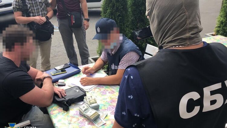 Сотрудники спецслужбы зафиксировали момент передачи посредникам первого "транша" суммы в размере 10 000 долларов, их задержали возле ресторана в центре Киева после получения оставшейся суммы.