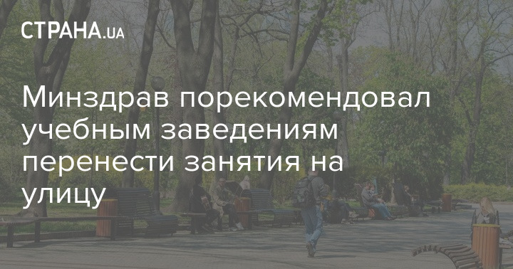 Минздрав Украины рекомендует образовательным учреждениям, в которых с 1 сентября начнется учебный процесс, организовывать проведение занятий на свежем воздухе. Об этом во время брифинга сообщил министр здравоохранения Максим Степанов.