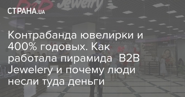 В Украине — громкий скандал с финансовой пирамидой B2B Jewelery. Как уже писала "Страна", ее офисы и многочисленные активы организаторов (в том числе недвижимость и парк дорогих авто) на днях накрыла СБУ.