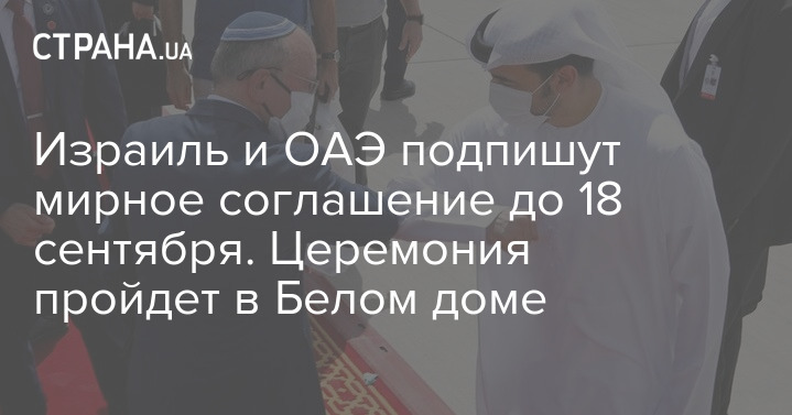 Официальные лица Израиля заявили, что церемония подписания мирного соглашения с Объединенными Арабскими Эмиратами может состояться в Белом доме до 18 сентября.