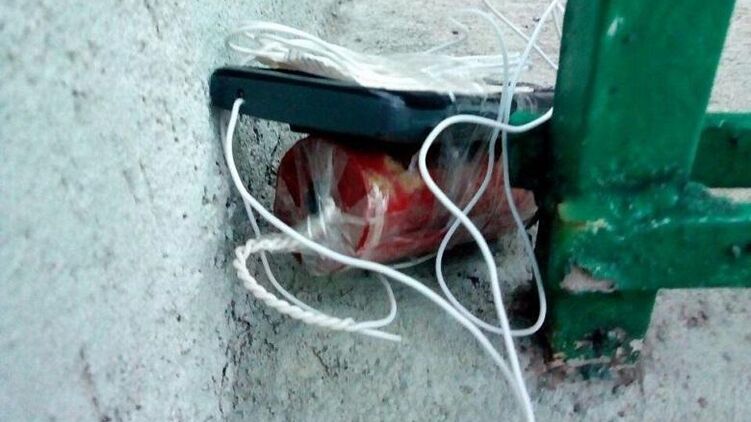 Заложенное злоумышленниками взрывное устройство. Фото: Нацполиция
