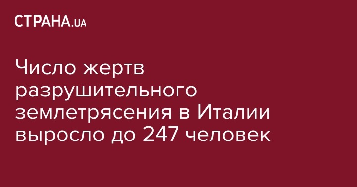 Из Италии приходят страшные новости. Число жертв кошмарного землетрясения здесь возросло уже до 247 человек. Об этом передает агентство AFP. ранее сообщалось о 159 погибших.