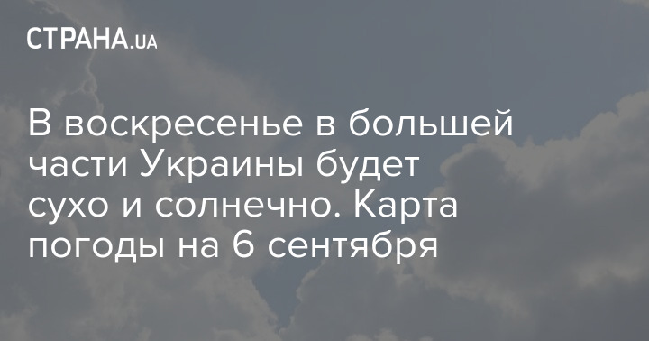В воскресенье, 6 сентября, в западную часть Украины из Германии придет влажный атмосферный фронт, а на остальной территории будет сухо и солнечно.