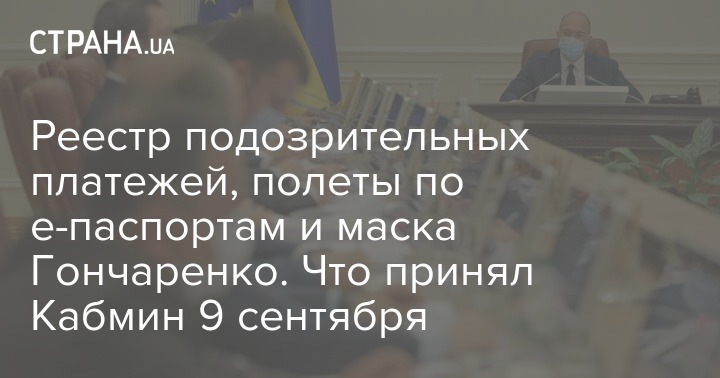 Реестр подозрительных платежей, полеты по е-паспортам и маска Гончаренко. Что принял Кабмин 9 сентября