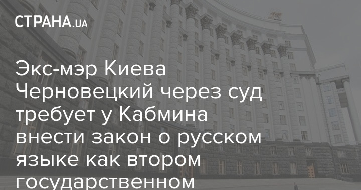Бывший мэр Киева Леонид Черновецкий подал в Окружной административный суд Киева (ОАСК) иск, касающийся Кабинета министров. Истец требует у правительства внести на рассмотрение Верховной Рады законопроект о присвоении русскому языку статуса государственного.