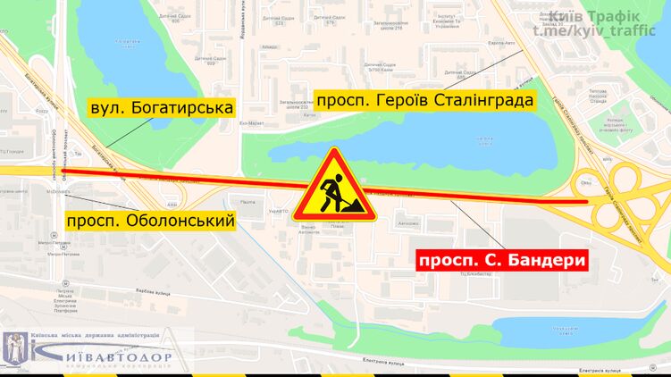 "На проспекте Степана Бандеры активно продолжается капитальный ремонт. В течение этих и следующих выходных дорожники планируют устроить верхний слой покрытия на участке от пр. Героев Сталинграда до пр. Оболонского. Во время работ движение будет частично ограничено", - сказано в сообщении.