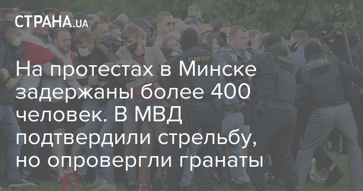 По состоянию на 19:00 на акции протеста в Минске правоохранители задержали 400 человек. МВД Беларуси подтвердило применение помпового ружья на митинге в столице.
