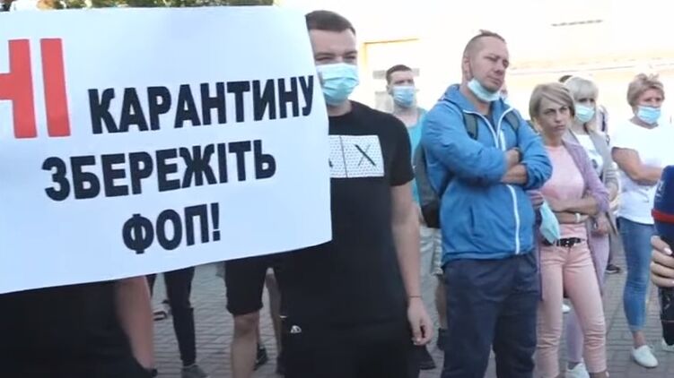 Как рассказали протестующие, их не устраивает "красная" зона, так как город оказывается заблокированным для всех слоев населения.