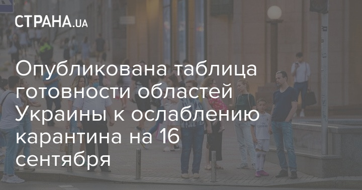 По состоянию на 16 сентября Киев и 19 регионов Украины не готовы к ослаблению карантина из-за высоких показателей заболеваемости коронавирусом.