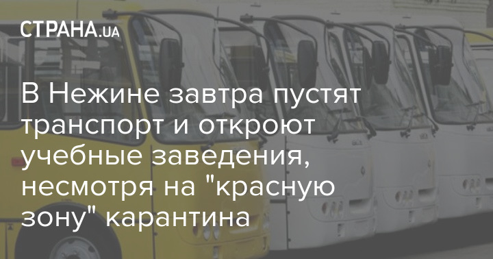 В Нежине (Черниговская область), который находится в "красной" зоне адаптивного карантина, со вторника, 22 сентября, обещают восстановить городские пассажирские перевозки и работу всех учебных заведений. Такое решение приняла Государственная комиссия по вопросам техногенно-экологической безопасности и чрезвычайных ситуаций на внеочередном заседании в понедельник, 21 сентября. Об этом сообщается на сайте Нежинского горсовета.