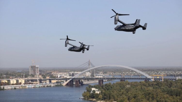 Посольство США призвало киевлян помахать рукой американским военным конвертопланам, пролетевшим над столицей