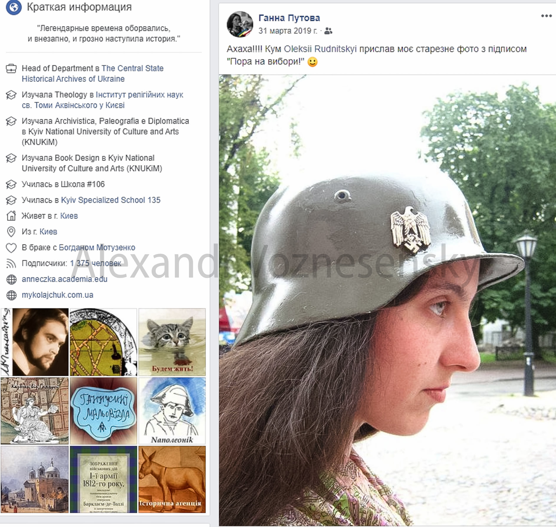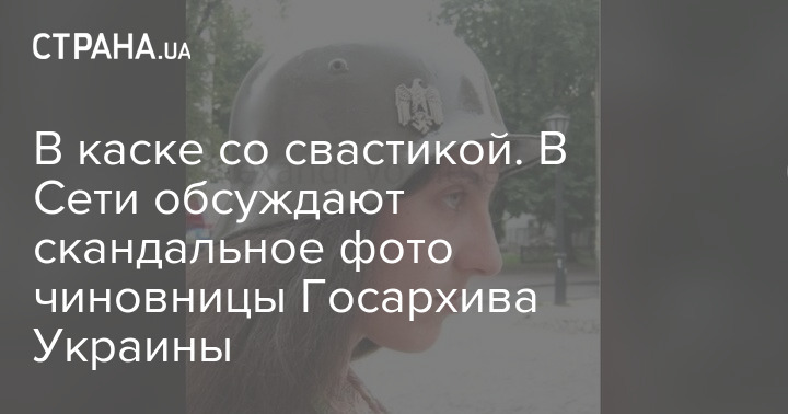 В сети обсуждают скандальные фото чиновницы из Госархива Украины Анны Путовой, которая опубликовала в Facebook  снимки в нацистской военной каске со свастикой.