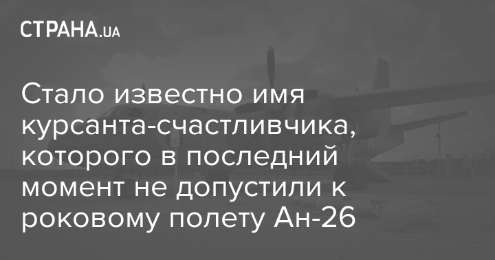 Командование Воздушных сил Вооруженных сил Украины назвало имя курсанта, которого не допустили к полету военного борта Ан-26 25 сентября, благодаря чему молодой человек выжил. Его зовут Александр Харченко.
