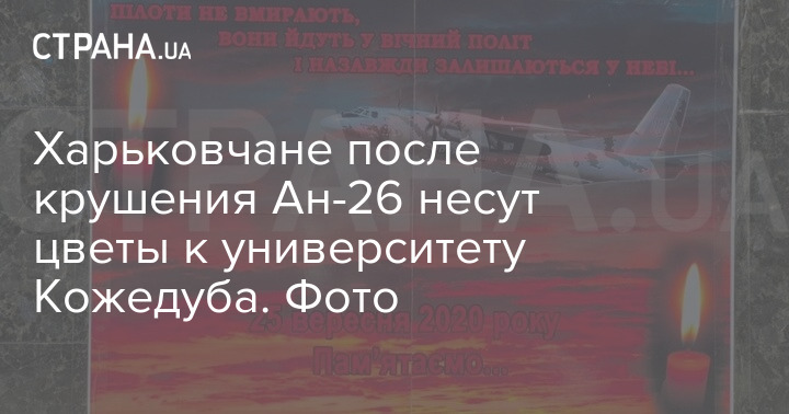 В субботу, 26 сентября, жители Харькова начали массово возлагать цветы у входа в Харьковский национальный университет воздушных сил имени Ивана Кожедуба, курсанты которого разбились вчера вечером во время учебного вылета.