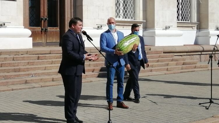 "Он был приятно удивлен. Насколько мне известно, на одном из заседаний Кабинета Министров этот арбуз порезали и угостили членов правительства прямо на заседании", - сказал губернатор.