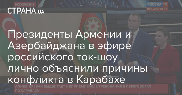 Президенты Армении и Азербайджана в эфире российского ток-шоу лично объяснили причины конфликта в Карабахе