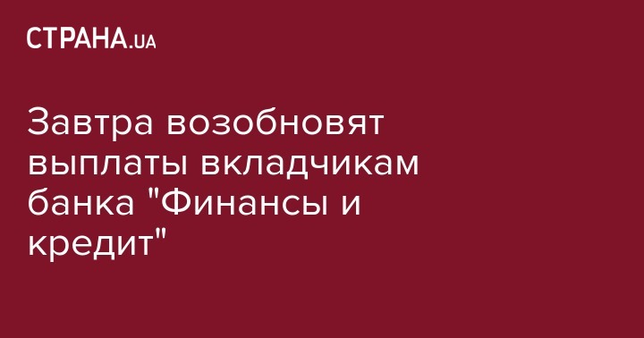 Завтра возобновят выплаты вкладчикам банка "Финансы и кредит"