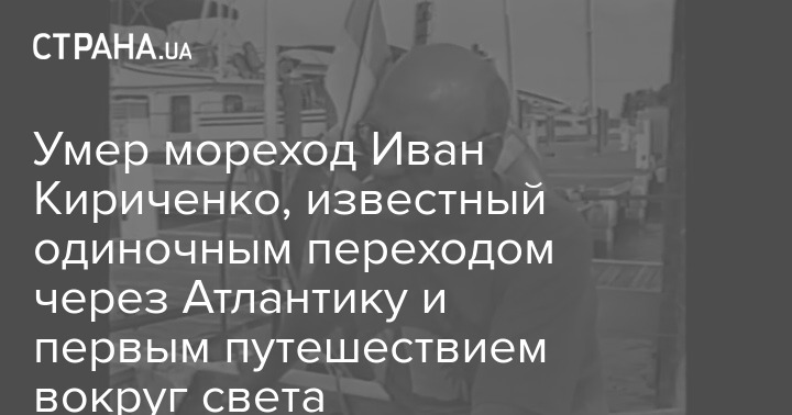 В ночь с 6 на 7 октября не стало украинского яхтсмена Ивана Кириченко. Он известен тем, что в 1996-1998 годах совершил первое в независимой Украине одиночное кругосветное плавание.