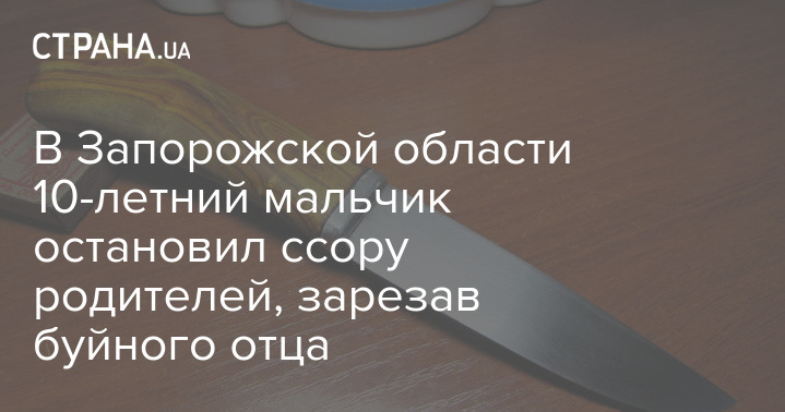 В Вольнянском районе Запорожской области, где в прошлом году под электричка сбила насмерть троих человек, 10-летний мальчик зарезал своего отца. Инцидент произошел во время ссоры погибшего со своей супругой. Ранее мужчина прибегал к насилию по отношению к членам своей семьи.