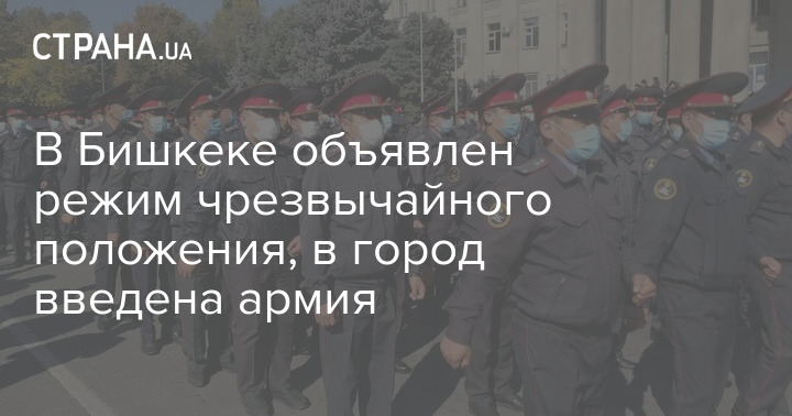 Президент Кыргызстана Сооронбай Жээнбеков ввел режим ЧП на территории Бишкека с 20:00 (17:00 по Киеву) 9 октября до 08:00 (04:00 по Киеву) 21 октября в связи с массовыми беспорядками, которые продолжаются с понедельника.