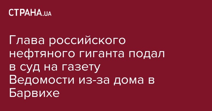 Глава крупнейшей нефтяной компании России - "Роснефть" Игорь Сечин подал в суд на издательский дом "Бизнес Ньюс Медиа", в управлении которого находится газета "Ведомости". Поводом для судебного разбирательства послужила опубликованная в этом издании статья о доме в подмосковном регионе - Барвихе, передает ВВС со ссылкой на сайт Останкинского суда Москвы.