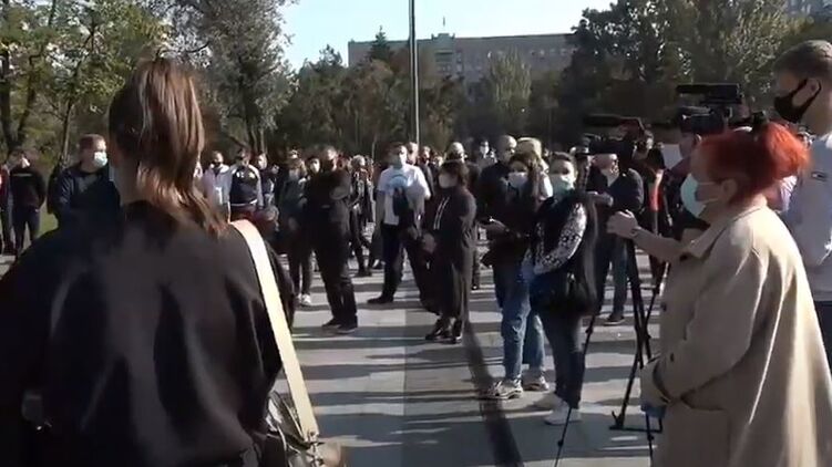 В Николаеве, после того как с 26 октября ввели дополнительные карантинные ограничения и город оказался в "красной" зоне, местные жители выходят на так называемый мирный митинг.