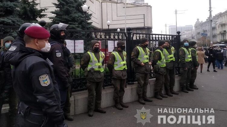 Днем в пятницу, 30 октября, правоохранители и нацгвардейцы усилили охрану здания Конституционного суда, рядом с которой проходит акция протеста из-за скандального решения о e-декларациях