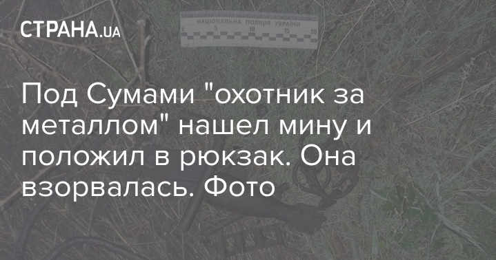 Под Сумами "охотник за металлом" нашел мину и положил в рюкзак. Она взорвалась. Фото