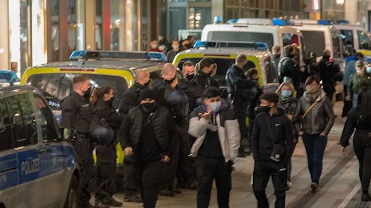 Несколько сотен человек неожиданно атаковали патруль во Франкфурте-на-Майне. Видео