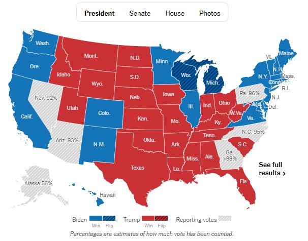 Итого: если в указаных штатах победят нынешние лидеры, то "счет" будет 270 против 268 в пользу Байдена.
