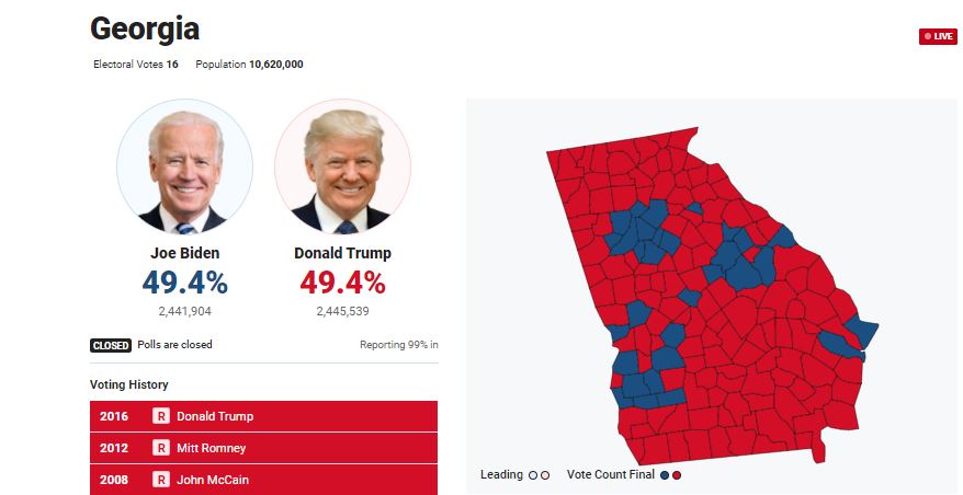 Если Джорджия уйдет к Байдену, он станет победителем выборов по голосам выборщиков.