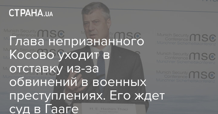 "Тачи заявил на специальной пресс конференции, что сдерживает обещание и уходит в отставку после вынесения ему обвинений", - говорится в материале.